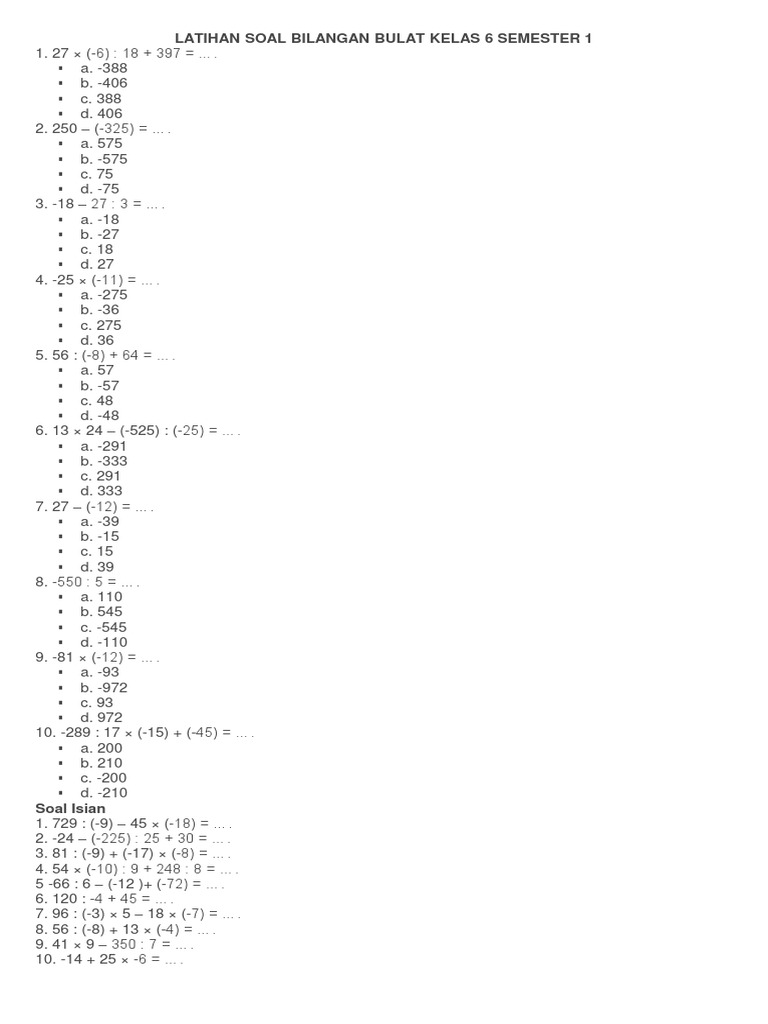 Latihan Soal Operasi Hitung Campuran Kelas 6 Sd Dilengkapi Kunci Jawaban Bimbel Brilian