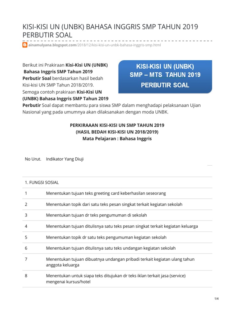 Download Soal Un Bahasa Inggris Smp Tahun 2018 2019 Sudut Baca